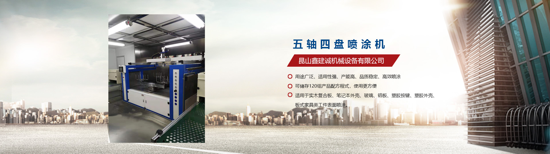 昆山鑫建誠機(jī)械設(shè)備有限公司自2009年涉足于自動噴漆機(jī)設(shè)備行業(yè),是一家專業(yè)生產(chǎn)噴涂自動化設(shè)備的生產(chǎn)廠家,先后推出了平面往復(fù)式自動噴漆機(jī):單軸至五軸自動噴漆機(jī)、立式往復(fù)升降機(jī)等。陸續(xù)推出了六軸/七軸/八軸/九軸往復(fù)機(jī)等自動噴漆機(jī)專用機(jī)械手,應(yīng)用到具有弧型且表面復(fù)雜的產(chǎn)品噴涂,昆山鑫建誠機(jī)械設(shè)備有限公司推出的往復(fù)機(jī)廣泛應(yīng)用于塑膠、五金、木器、裝飾建材、汽車摩托車配件等領(lǐng)域。我們秉承“專業(yè),專注,誠信,互利”的原則,積極引入臺灣技術(shù),充分發(fā)揮公司多位高級機(jī)械結(jié)構(gòu)工程師、自動化工程師以及自動噴漆機(jī)系統(tǒng)工程